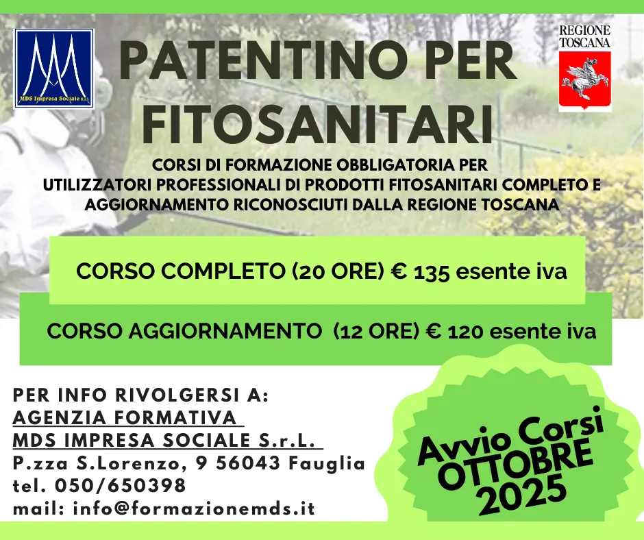 Patentino per utilizzatori di prodotti Fitosanitari – Corso completo e aggiornamento a Pisa – OTTOBRE 2025
